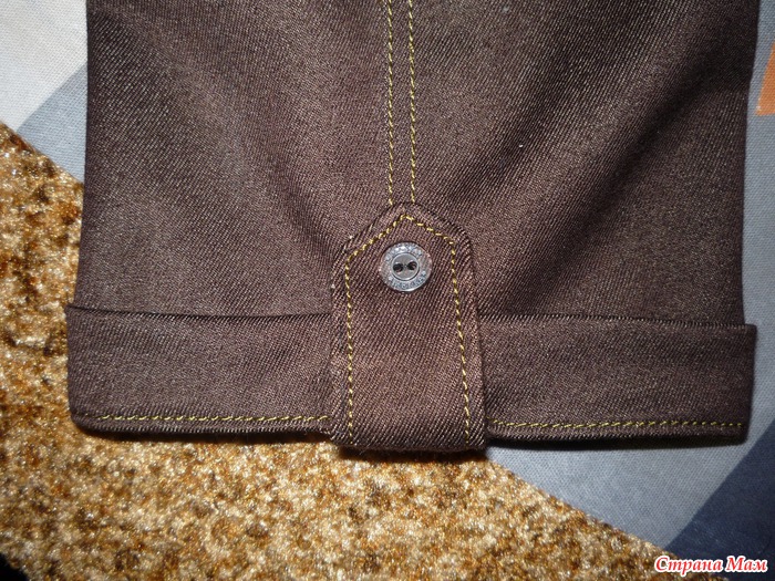 14. Подгиб прогладить на лицевую сторону, зафиксировать шлевки пуговицей.