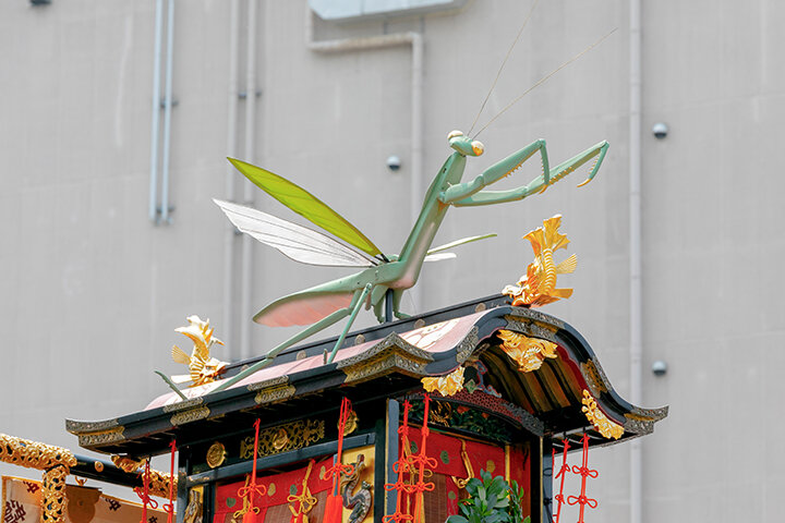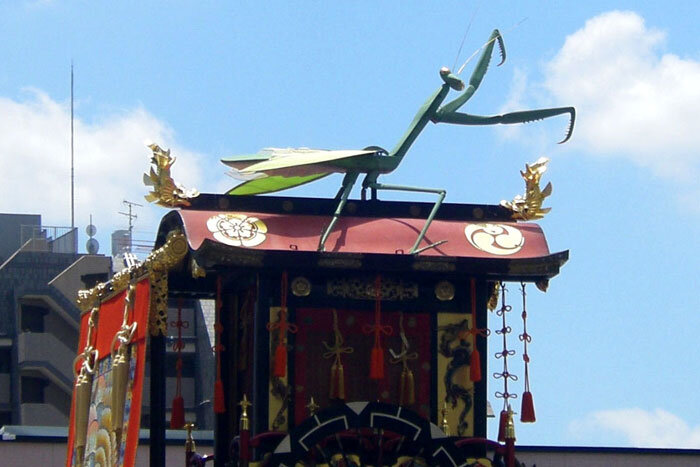 Такая повозка называется "Кама-яма" (カマ山, от "камакири"), а богомол на ее крыше совершает разные движения: поднимает "кама-серп" крутит шеей и расправляет крылья. Считается, что эти трюки демонстрируют необычайную красоту богомола.