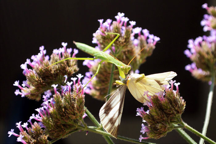 Как и взрослые богомолы, малыши стойко выжидают, пока добыча не приблизится - ловко ловят тлю, мелких мушек, щитовок, муравьев итд.