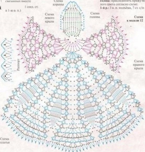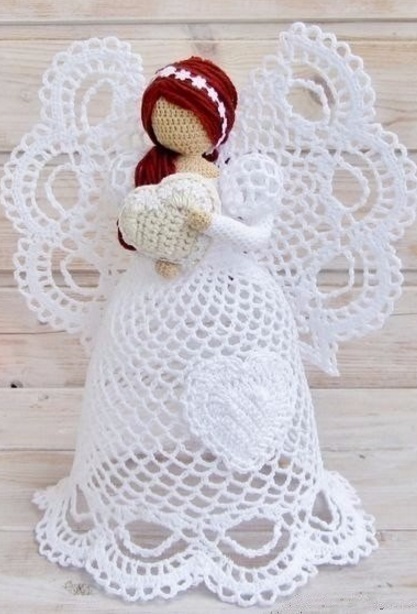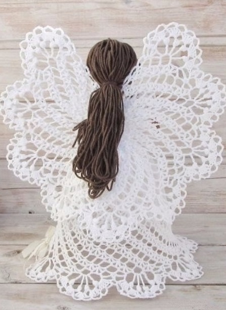 Восхитительные и нежные рождественские ангелы связаны крючком. Вязаные ангелочки можно подарить близким на Рождество Христово или украсить ими интерьер гостиной. Ангелочки с ажурными крыльями способны вызвать восторг не только у детей, но и у взрослых. Платье ангела и крылья связаны одним и тем же узором. Для вязания рождественских ангелочков вам потребуется пряжа трех цветов: белого, бежевого и коричневого. Чтобы ангелочки держали форму, после окончательной сборки, следует их накрахмалить.