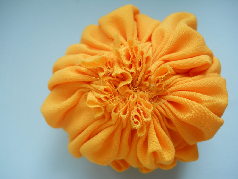 8. Через отверстие набиваем наш цветок слегка синтепоном. Затем стягиваем отверстие и закрепляем.