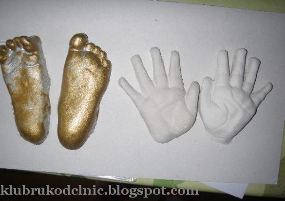 5. Сухой гипс легкий, можно готовый слепок ножки и ручки почистить щеткой, чтобы был ровный и чистый. Не забывать: аккуратность и терпеливость!