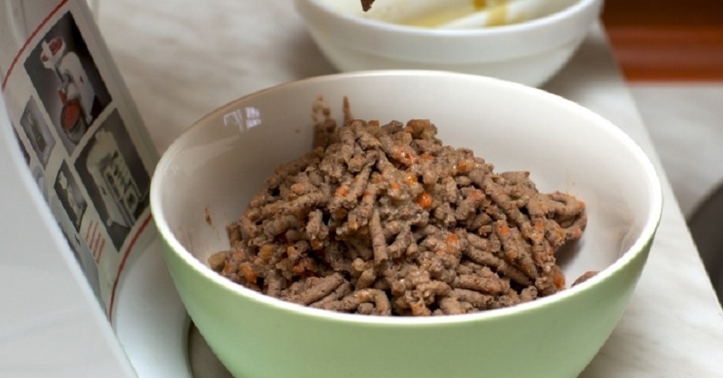 Пропусти через мясорубку куриную печень вместе с овощами.