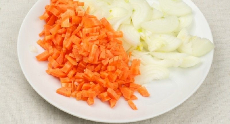 Измельчи морковь и лук.