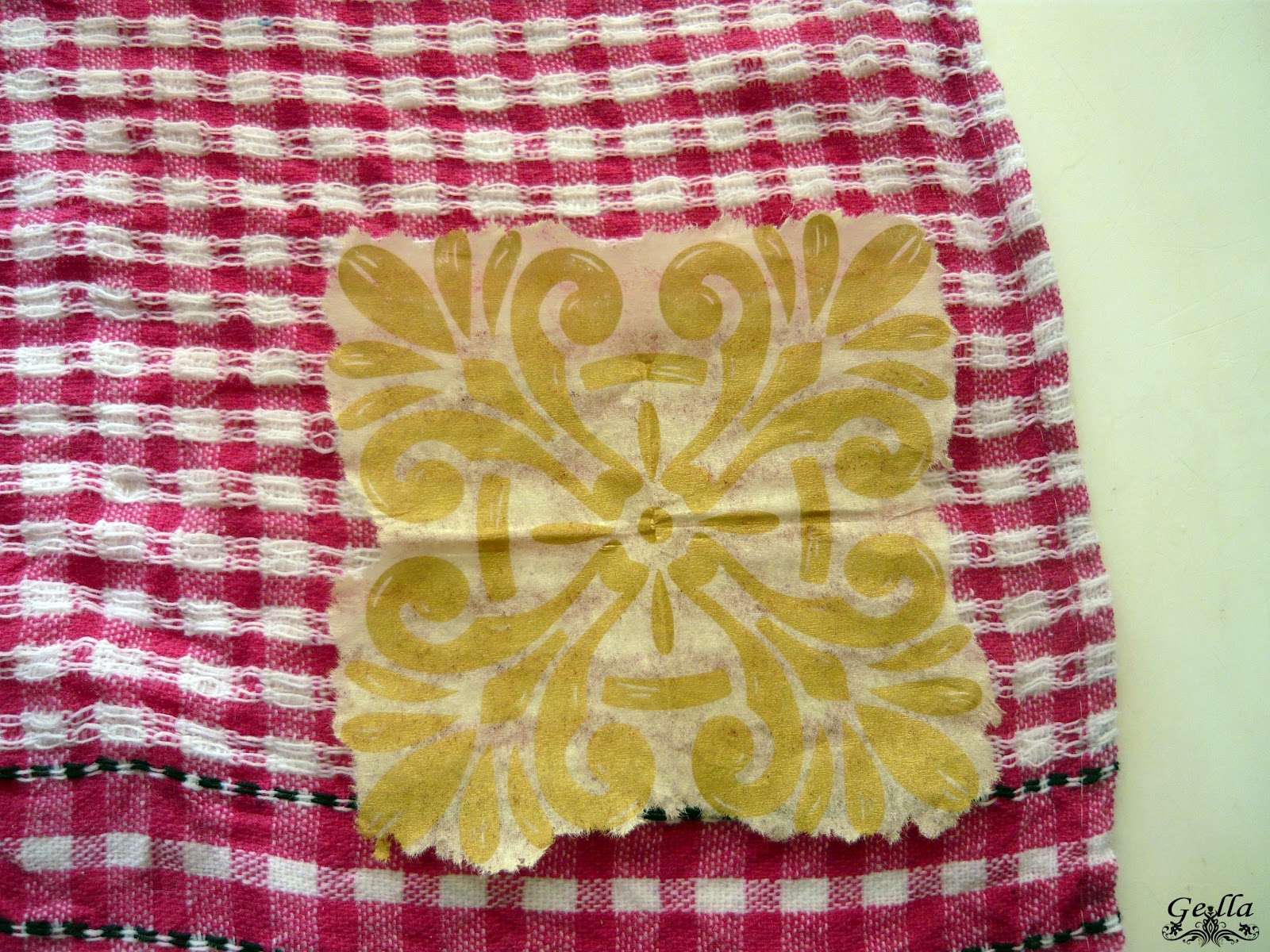 Мочим полотенце водой и хорошенько отжимаем, чтобы оно было чуть влажное. Кладём наш мотив на полотенце