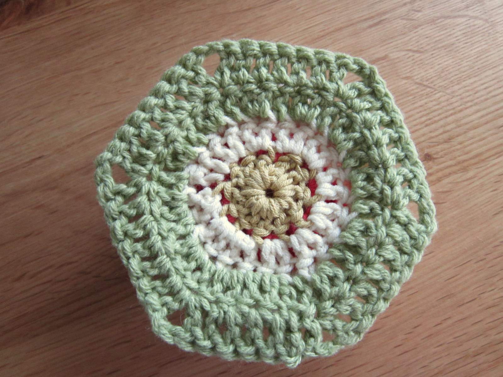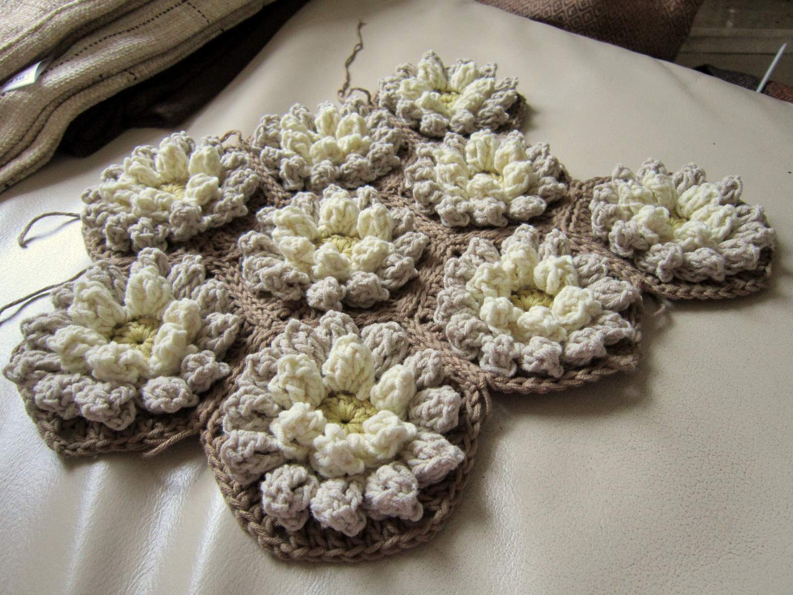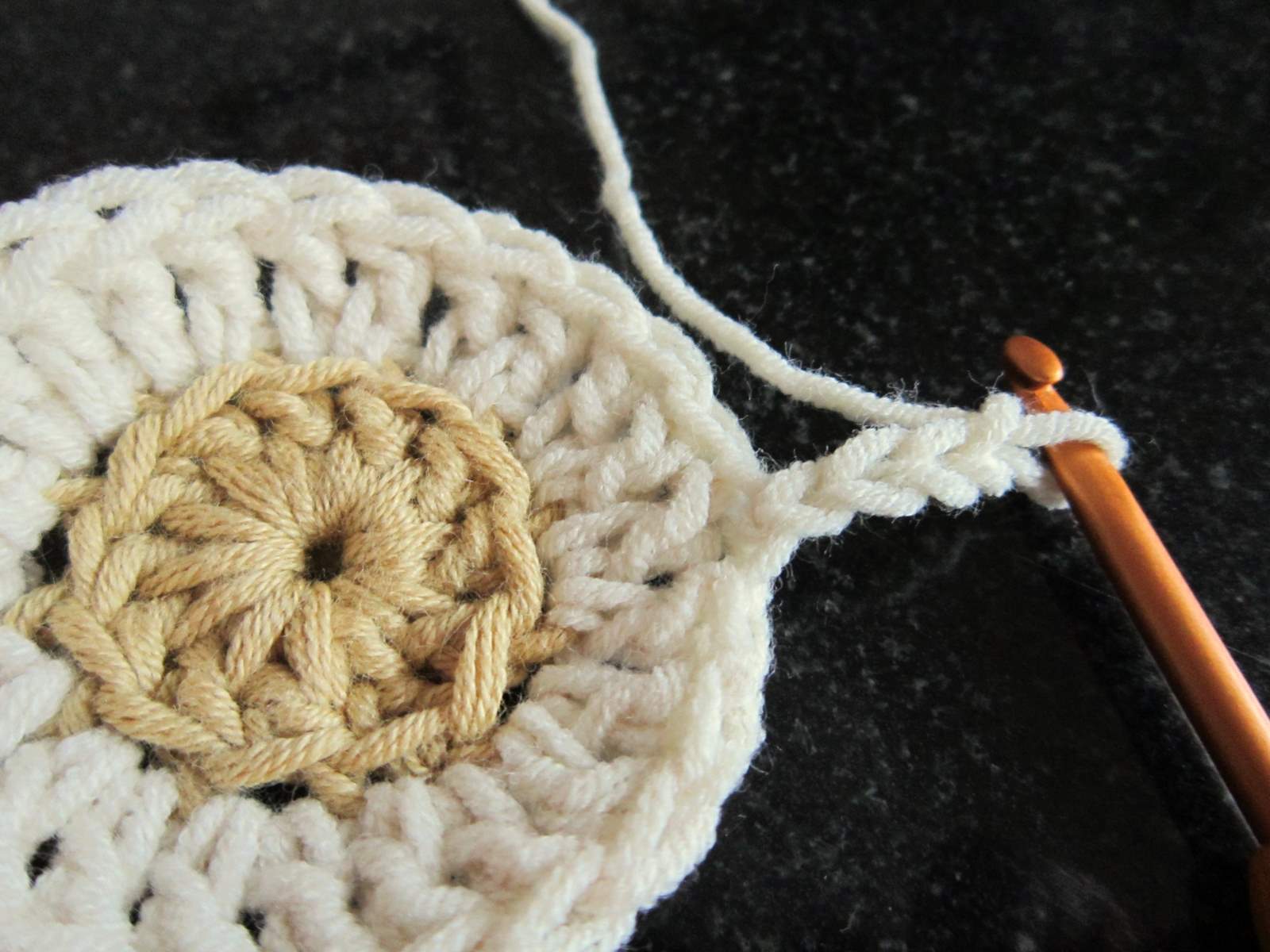 сли вы хотите сделать брошь или украсить сумку или подушку - работу можно считать законченной. 12. Но, чтобы связать шестиугольник, нужно провязать еще два ряда. Следующий ряд будем вязать за задние стенки петель (Помните, я писала, что мы возвратимся к ним)