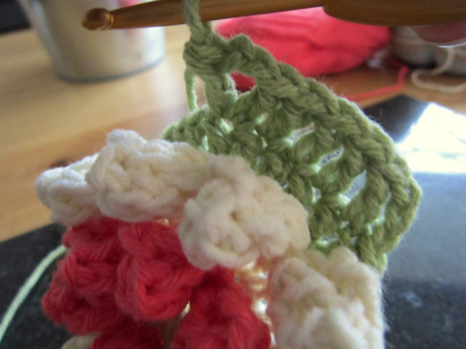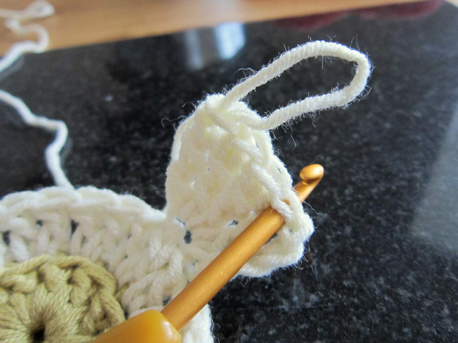 [640x480]13. Следующий ряд СБН, цепочка из 4 ВП, *5 ССН, цепочка из 3 ВП*, закрепить в конце вязания нить.