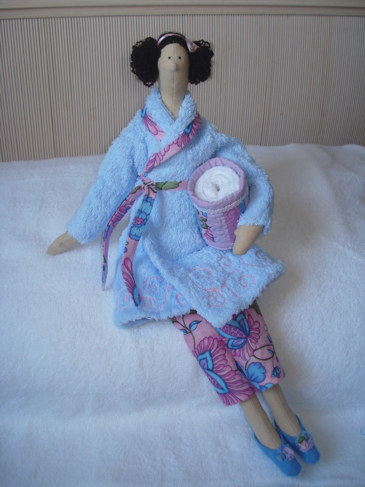 Наконец, попробовала сшить банную фею-тильду. Получилась дама в нежно-голубом и ярко-розовом.