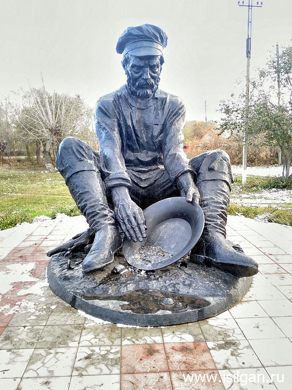 Памятник золотодобытчику в Бодайбо, Иркутская обл., Россия