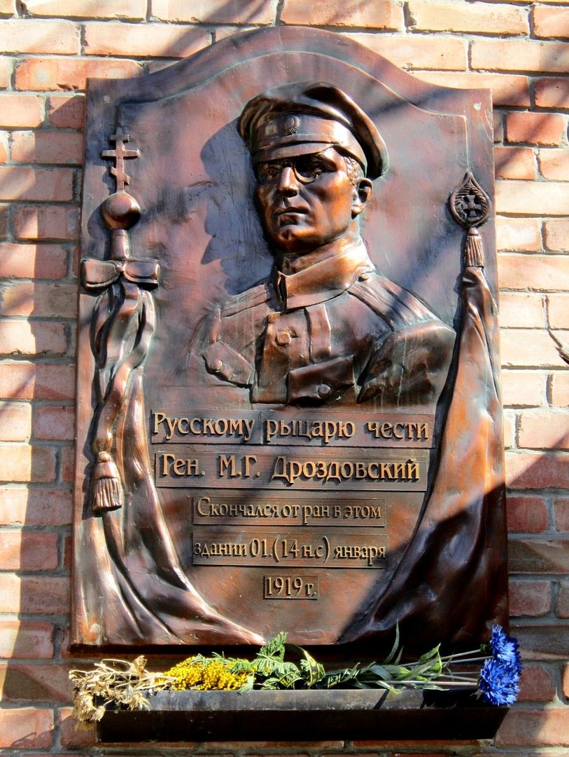 Памятная доска М.Г.Дроздовскому в Ростове-на-Дону