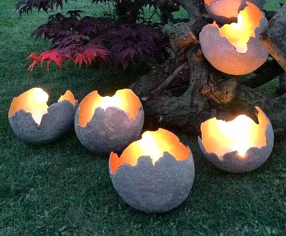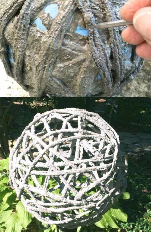 После высыхания раствора, иголкой сдуваем шарик. Все! Наш садовый арт-объект готов. Можно покрасить, по желанию.
