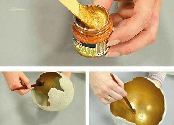 После высыхания раствора, убираем шарик и красим внутреннюю часть яйца.