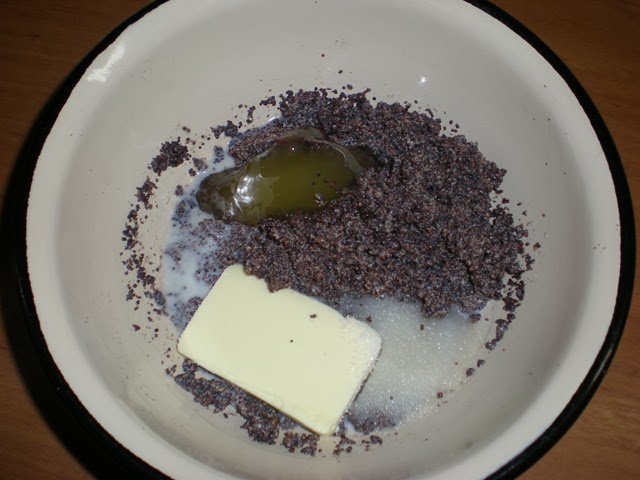 Пока тесто подходит, займемся начинкой. Слить воду с мака, пробить его блендером. Добавить в мак масло, молоко, ванильный сахар и мед. Поставить варить массу 3-4 минуты. Мак нужно постоянно помешивать, чтобы масса не пригорела.