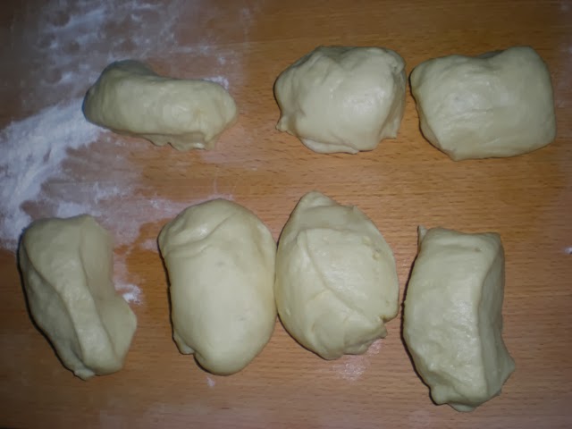 Теперь приступим к формовке пирога.Тесто разделить на 7 равных частей.