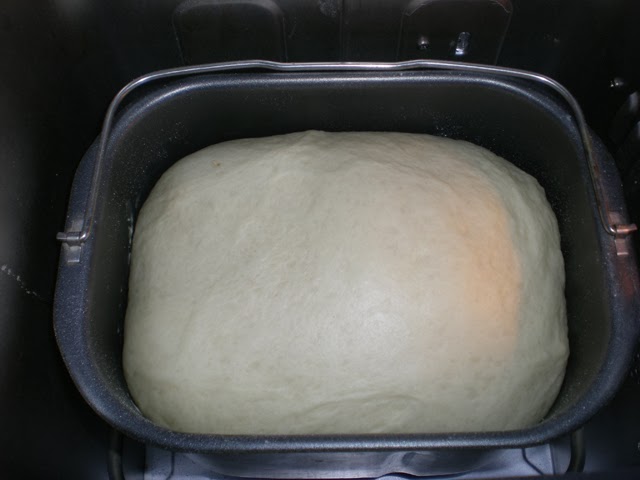 Замес и подъем теста я доверила хлебопечке. Когда в доме прохладно, она здорово выручает. В моей модели закладываются вначале жидкие ингредиенты, потом сухие. Поэтому я влила опару, после добавила муку, соль, сахар. Начала замес. И минут через 5, по совету автора добавила в тесто размягченное сливочное масло.