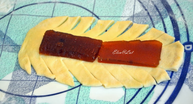 Тесто по краям режем полосками, по фото, надеюсь, все понятно.