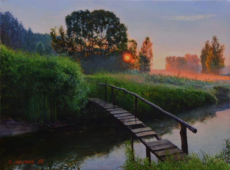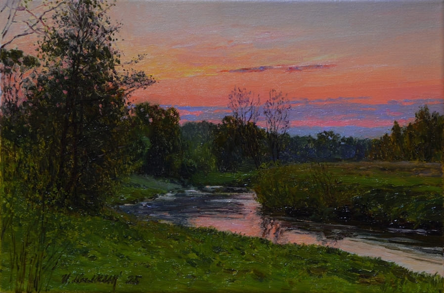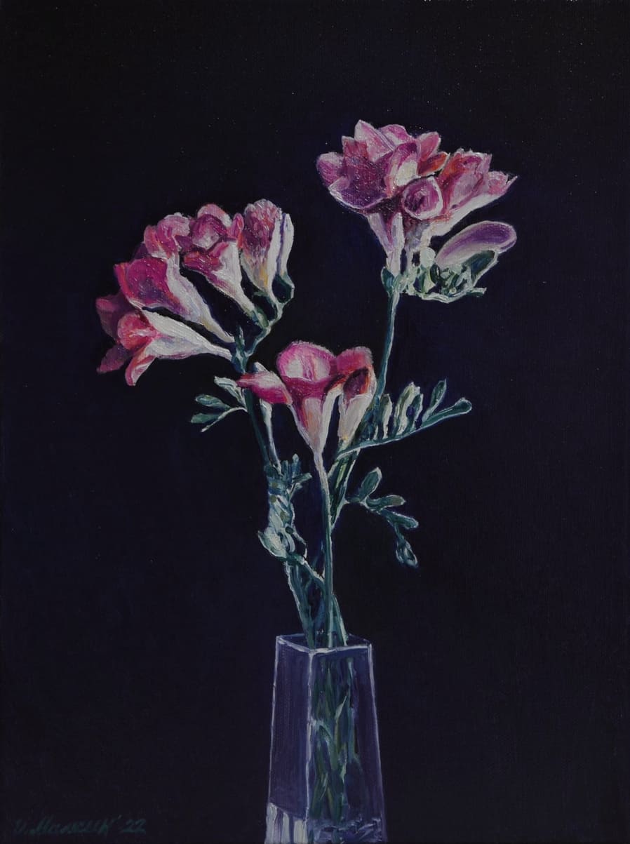 – В целом — было весело и интересно учиться, хоть были и свои трудности, и моменты, которые не нравились, но куда без этого. Все равно, свои студенческие годы вспоминаю с теплом. Много хороших воспоминаний осталось. Сейчас занимаюсь в основном пейзажной живописью. Пейзаж мне ближе всего. Также нравятся натюрморты, в особенности — натюрморты с цветами.