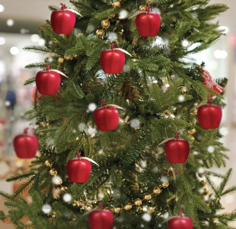 Красные фрукты вешали на елки в преддверии Рождества, так как они ассоциировались с Райским садом. Многие семьи во Франции до сих пор уважают этот обычай, а потому среди множества игрушек на французских елках все еще можно разглядеть яблоки — искусственные или настоящие.