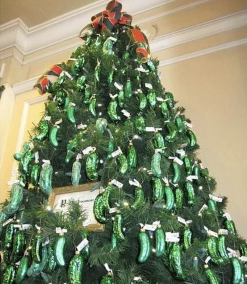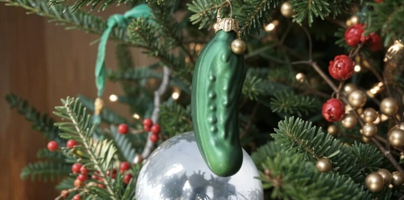 Ученые также предполагают, что раньше в Германии на елку, между всеми украшениями, вешали еще и маринованные огурцы. Считалось, что тот счастливчик, кто первым их находил, получал заряд удачи на целый год. Позже обычай переняли и другие государства.