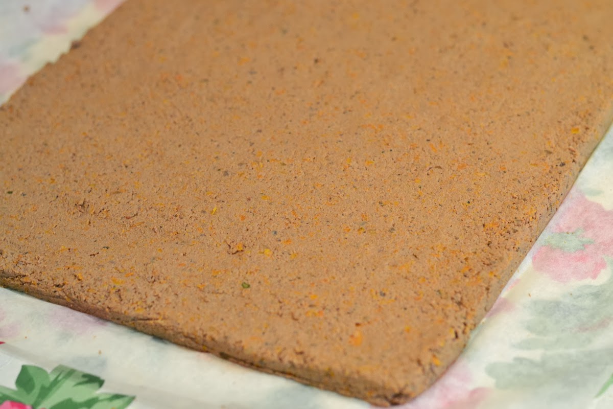 Теперь самое важное, собрать рулет в рулет))) Выложить на пергамент фарш ложкой и начинать разравнивать чистыми руками в прямоугольник, хорошо утрамбовать, выровнять все стороны ножом.