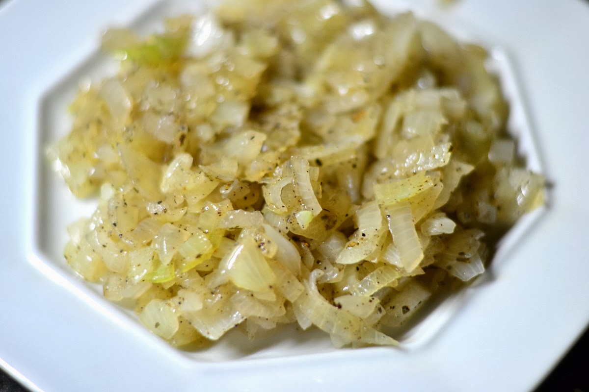 Мелко порезать и протушить в малом количестве растительного масла лук,посолить и поперчить.