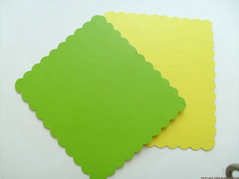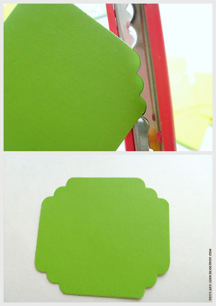Уголки ценников размером 4,5см х 3см я располагала между двумя делениями фигурных лезвий.