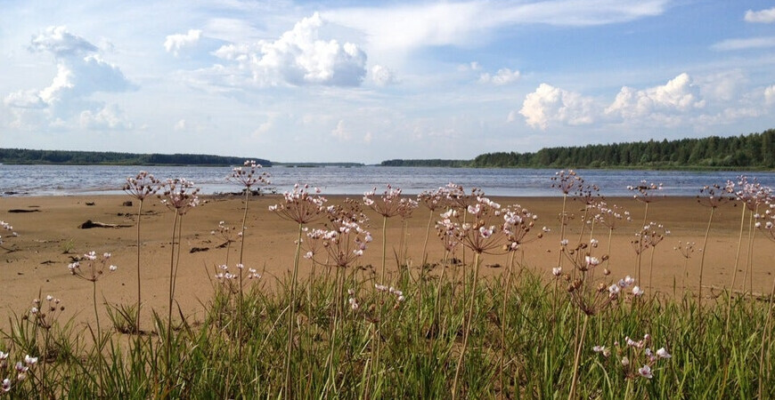 По берегам, местами, виднеются песчаные дюны, которые покрывают лишайниковые боры.