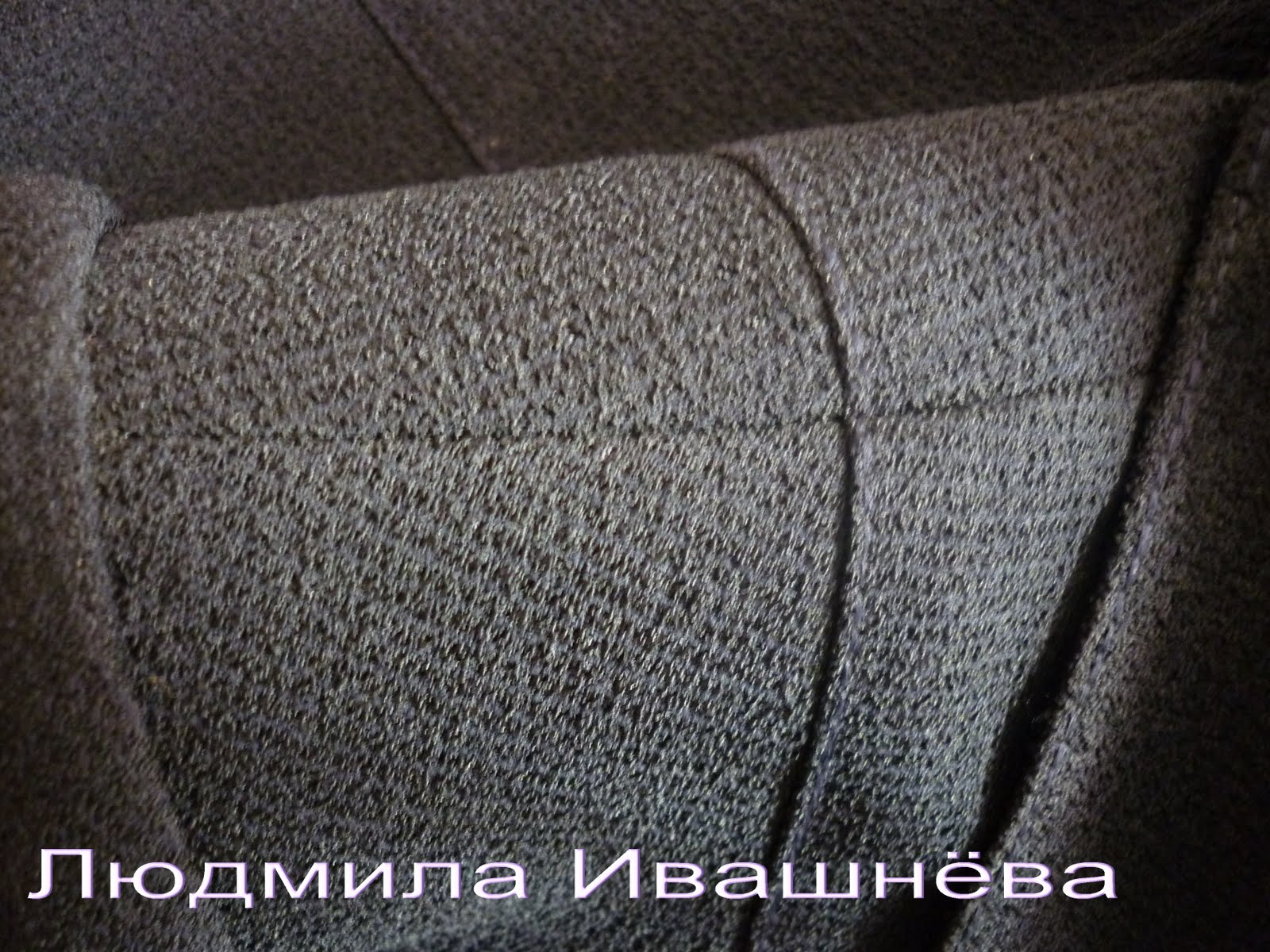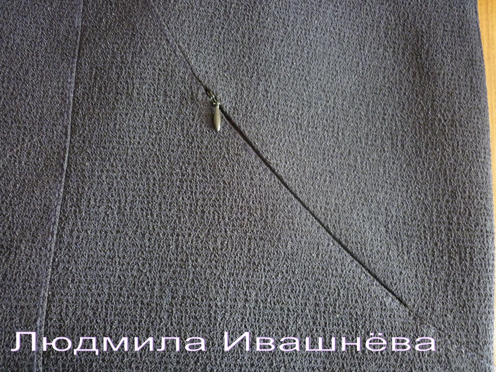 Вот так может быть оформлен вход в карман, потайной молнией. Это мой жакет и карманы я не люблю, но они нужны. Вот я и решила разветвить рельефную линию и сделать вход в карман в шве. Дело это оказалось непростым – линия не прямая, но ничего я справилась.