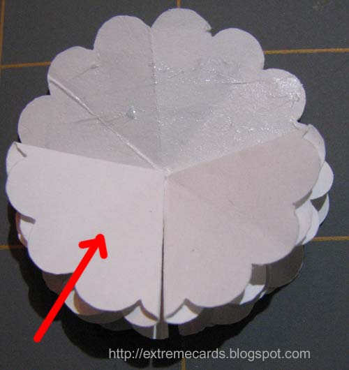 Pull the fifth and sixth flowers toward each other at the center of the flower, and glue them just along their center lines.