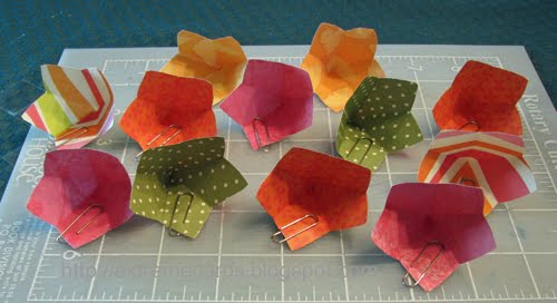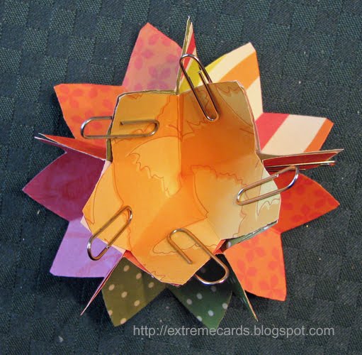 Here's one idea for using up scraps of beautiful paper. It's similar to a kusadama ball, which is a sphere made from multiple origami flowers.
