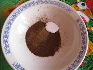 Теперь готовимся к окраске кота. Берем кофе, корицу, ПВА (еще я использую какао, его не было)