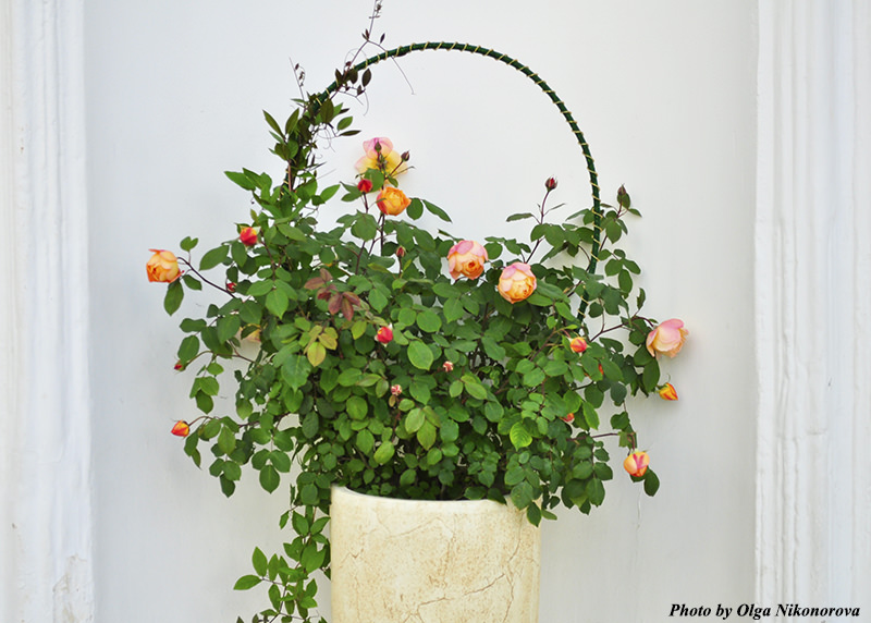 Сейчас все чаще можно увидеть розы, посаженные в контейнеры или красивые вазоны. Их как правило, размещают около крыльца, дома или беседки, вдоль дорожки. Высаживают низкорослые компактные сорта роз, которые цветут весь сезон, до заморозков. Есть особенности по уходу за контейнерными растениями. Заключаются они в более частом поливе и увеличенном количестве подкормок, так как земли в горшке мало, а розы хотят и кушать, и пить). На зиму, контейнеры можно поместить в подвал или в зимнем саду.
