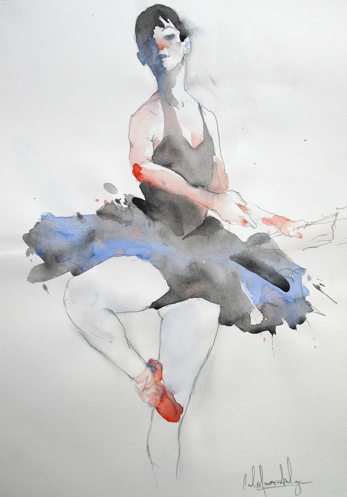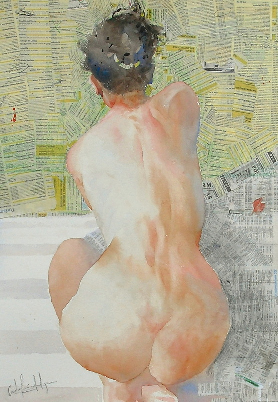 Акварельное ню от Carlos León Salazar, р. 1968, Венесуэла