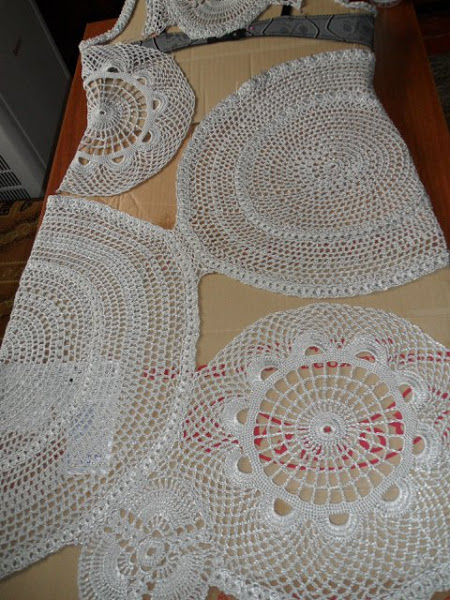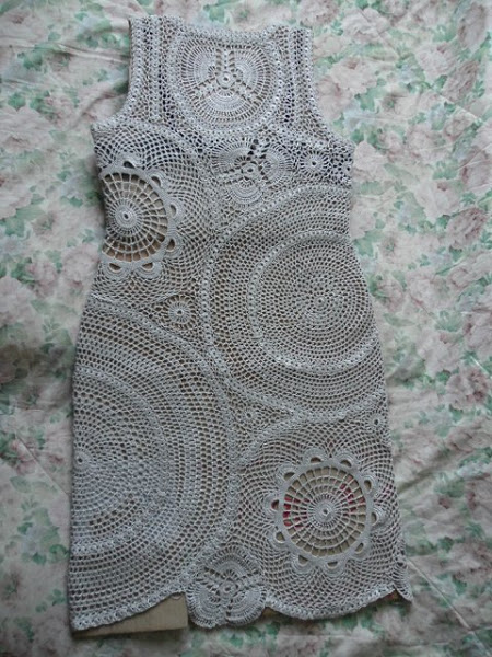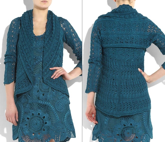 Костюм состоит из кардигана, связанного спицами, и платья, связанного крючком