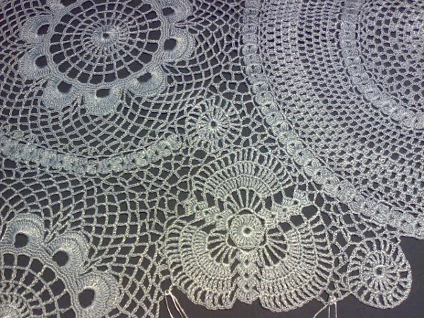 накидами через 1 воздушную петлю над каждым столбиком с 32 накидами, 3