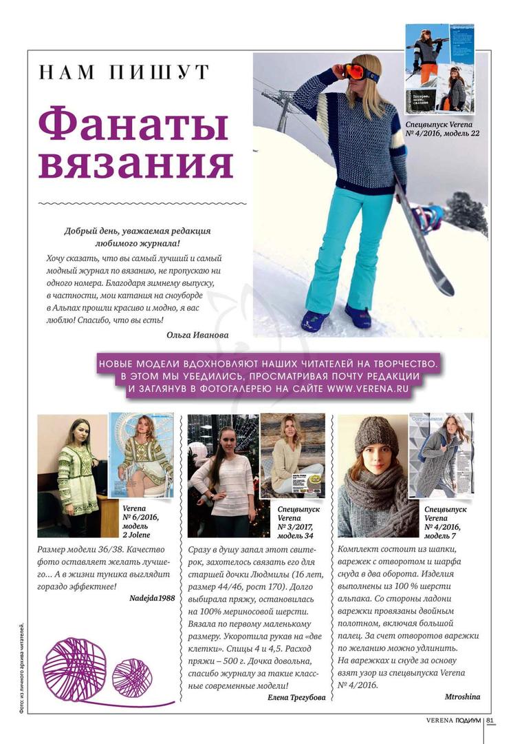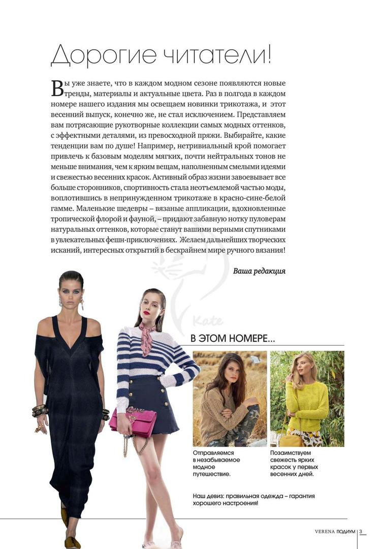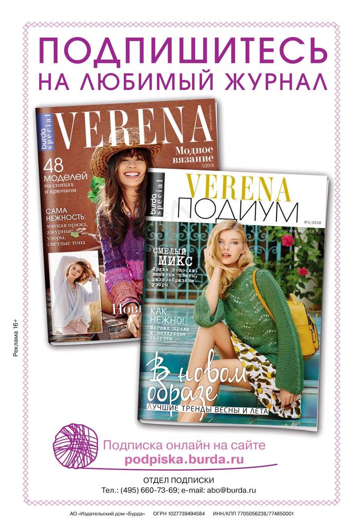 Популярный журнал по вязанию, который многие годы остается лидером среди аналогичных изданий на русском языке по вязанию на спицах и крючком. Очередной номер полон ярких и свежих идей. Все новинки трикотажной моды - прямо с подиумов европейских модных дефиле. Весна и лето будут в радость вместе с журналом Verena Подиум!