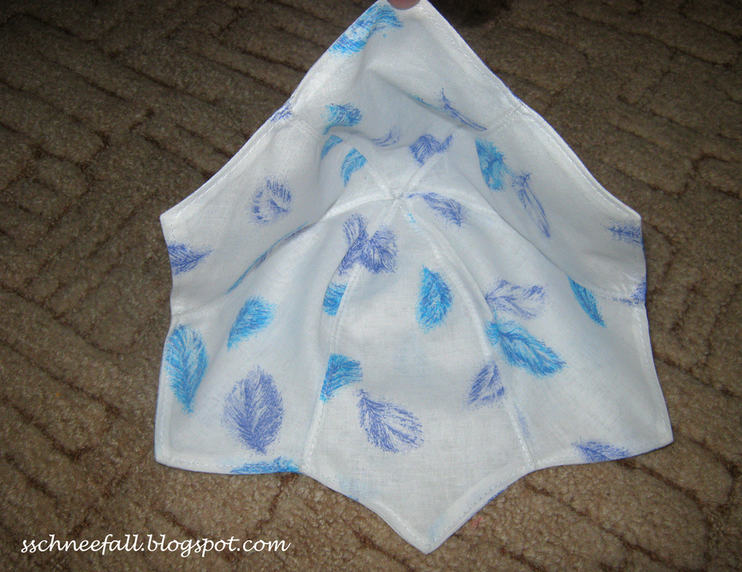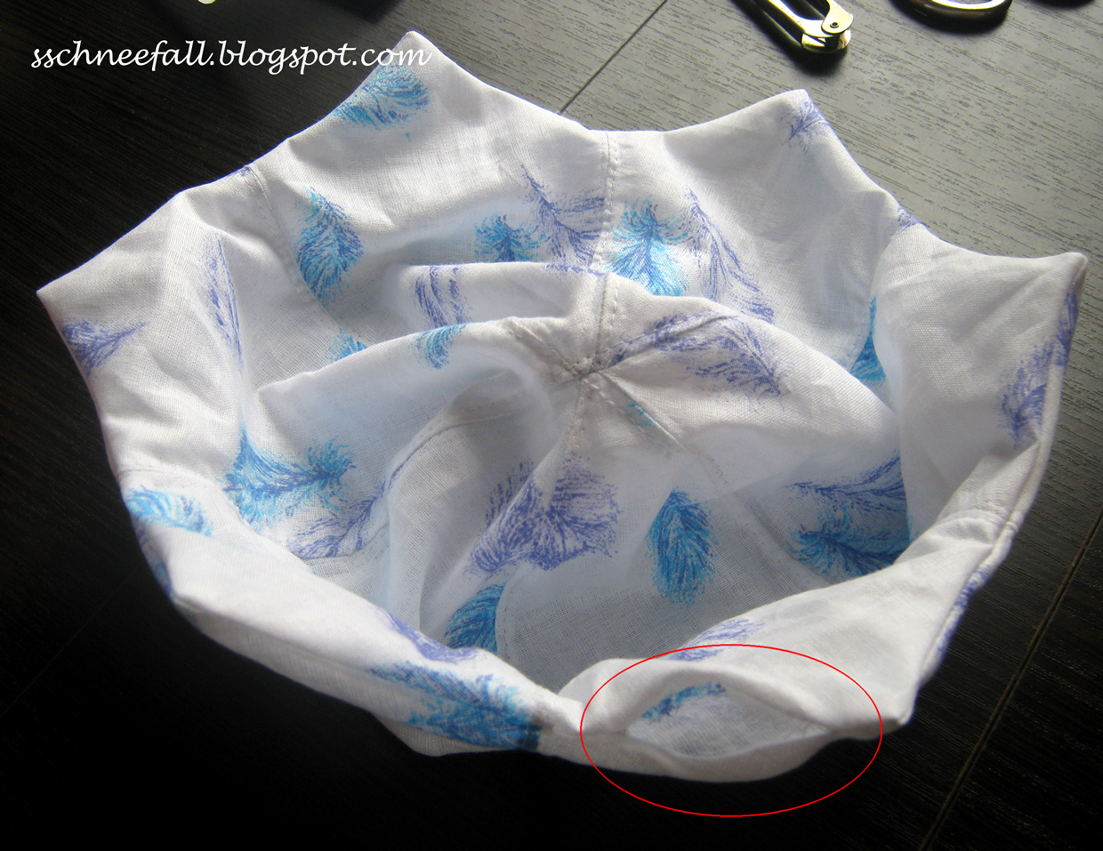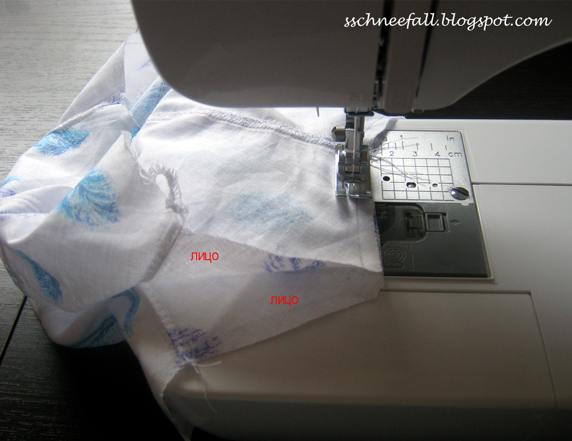 затем складываем наши шапочки лицом к лицу и стачиваем, но не до конца...