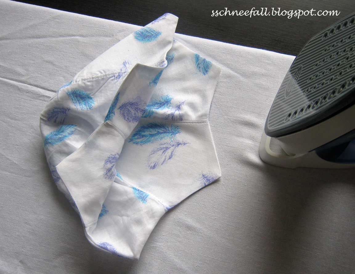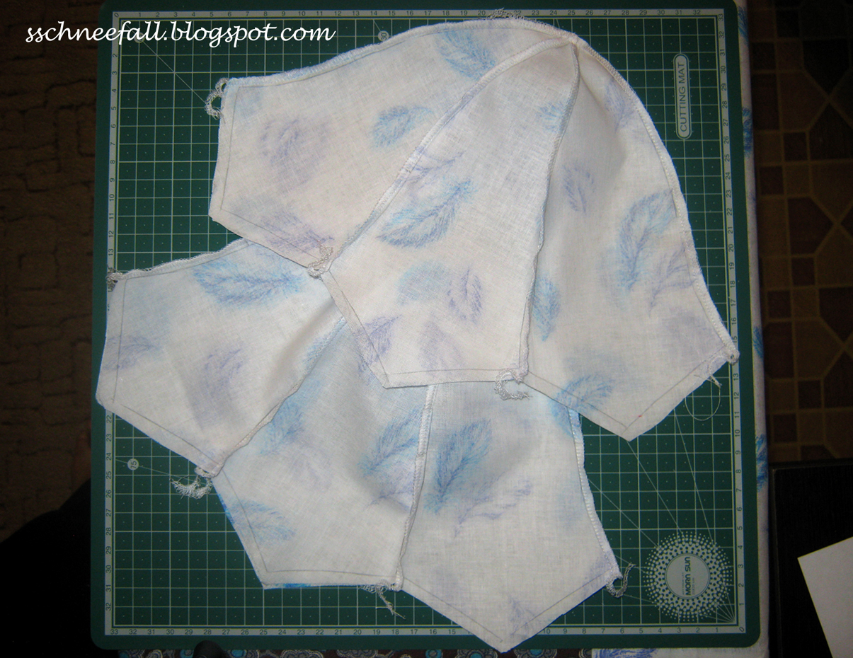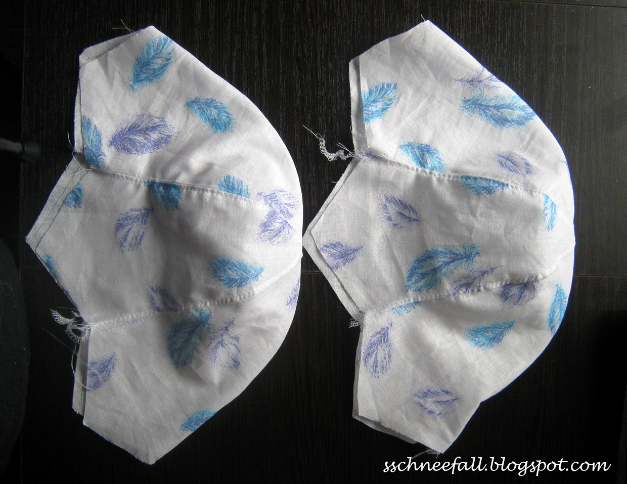 затем складываем наши шапочки лицом к лицу и стачиваем, но не до конца...