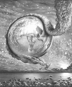Говорят же иногда – я от всего устал! И в живописи устаешь, наверное, от обилия цвета, как и в музыке от навороченных аранжировок. Хочется простоты, тишины, хотя бы внутреннего спокойствия. Работы Гурама Доленджашвили именно спокойные. Эхом доносится одинокий звук дудука, как похоронная мелодия по урбанистическому соцреализму. Все уходит в прошлое. И только черно-белый Космос с триллионами отпечатков человеческих глаз остается навсегда. И грузинский художник Гурам Доленджашвили пишет о вечной красоте, вдохновляясь Космосом.