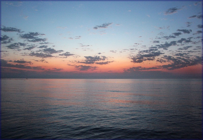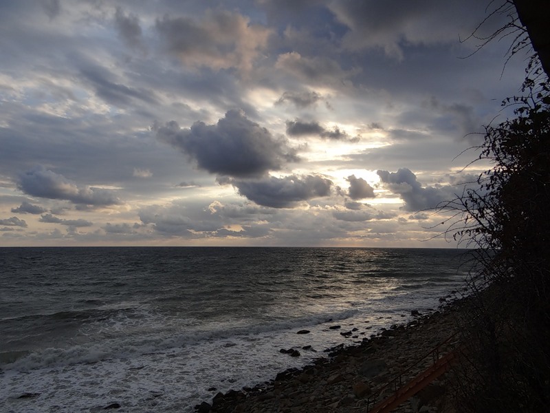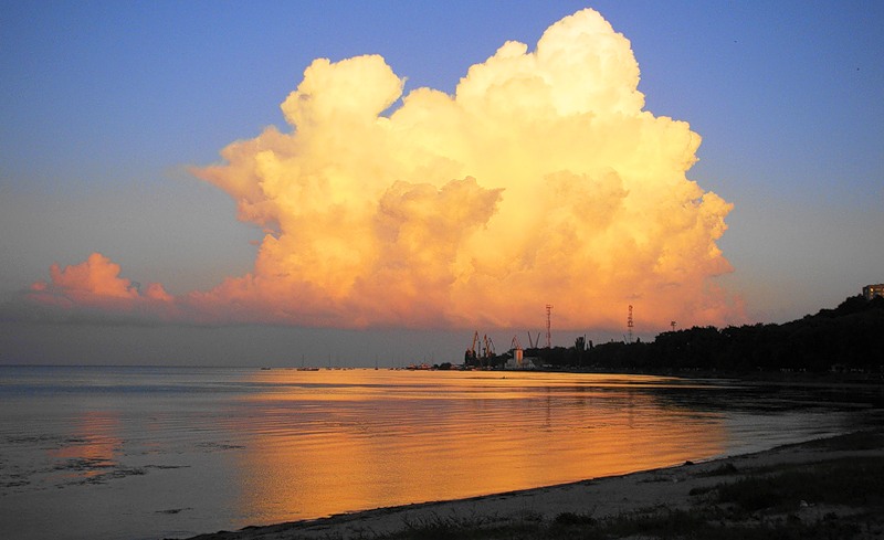 Да, совсем забыл. Морское небо, как и любое другое небо на открытой большой поверхности, будь то степь или пустыня, от других небес отличается, прежде всего, ощущением великого объема воздушного пространства, контрастом в свете и цвете. Облака кажутся низкими, а тучи просто давят. Здесь идет дождь, а в дали у горизонта светит солнце. И наоборот. А какое раздолье для ветра? Он здесь на свободе. Это его стихия!