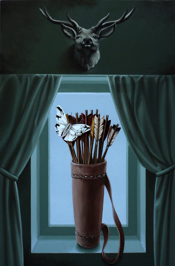 Сталкивать противоположные цвета, свет с тенью, день с ночью, выковыривать глаза и вспарывать животы, и всю эту хренотень тщательно вырисовывать. Почему - то в большинстве случаев художники - сюрреалисты прибегают именно к таким методам самовыражения, к агрессии и запугиванию кого - то. Получаются такие мультяшные страшилки без идей и мыслей. Но композицию, перспективу, цветовую гамму еще никто не отменял. Разум - тоже.