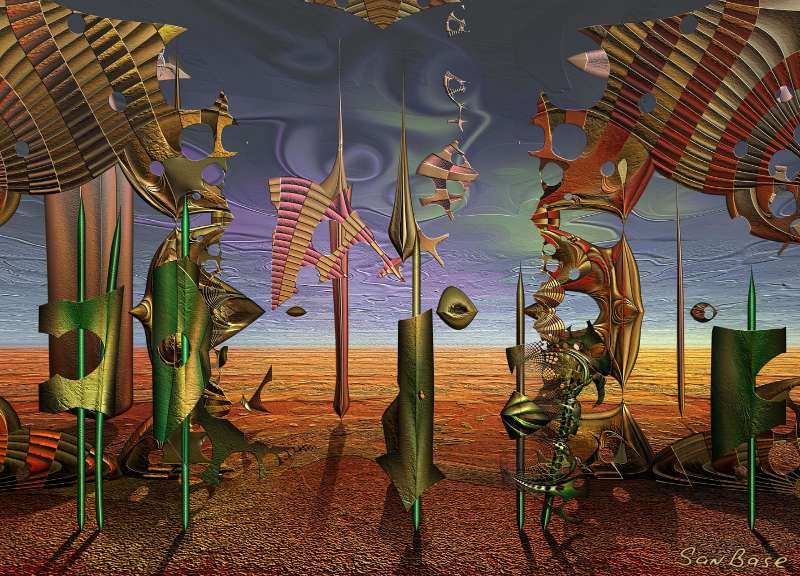 Александр Басе (San Base) - пример тандема двух видов творческой деятельности в одном лице: художника и программиста. Я не буду углубляться в техническую сторону такого вида искусства, и говорить о сгенерированных изображениях в форме фрактальной геометрии (рекурсивно повторяющихся геометрических форм с переходами цвета) и т.д. и т.п. Кому интересно, может прочесть о Процедуральном Искусстве отдельные статьи в интернете. Мне интересно то, каким образом Александр Басе (San Base) пришел к такому творчеству?