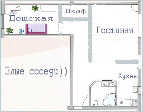 | В зеркале шкафа-купе отражение двери в детскую комнату |
