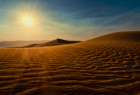 Среди песков с безжизненным пейзажем,