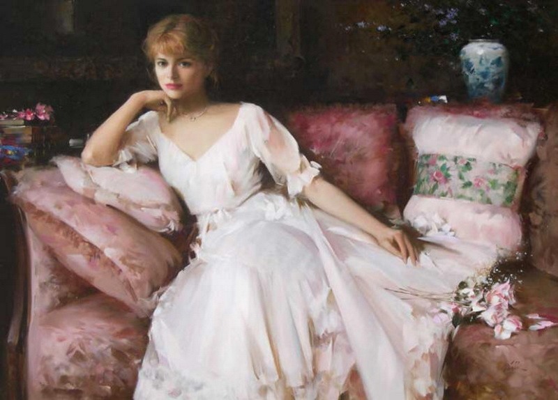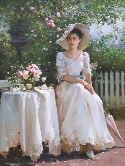 An He - китаец, а как славно и лихо живописует европейскую женскую красоту! Рассматривал его работы и задумался. То ли соскучился по аристократично одетым изящным девушкам, то ли по старым временам из рассказов, повестей, пьес и романов писателей XIX века, то ли осень, со своей традиционной дождливой погодой потревожила и разбудила романтику? Все же по старым временам, если разглядел в девушках чеховский мир женской красоты. Если правильно помню, таких женщин называли домашними. Тогда еще подумал, а что, есть и дикие особи?