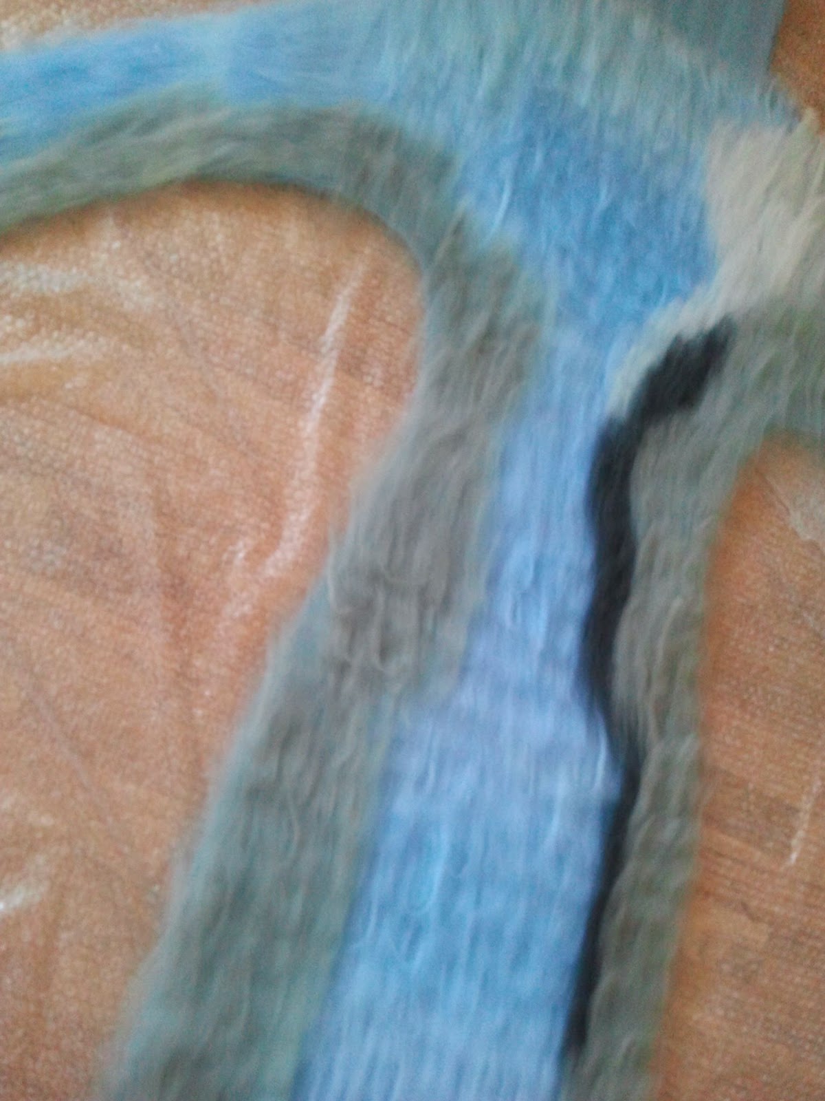 Приступаем к раскладке тонкого слоя волшебного германского мериноса. По краям (на боках) платья выкладываем темный серый цвет.