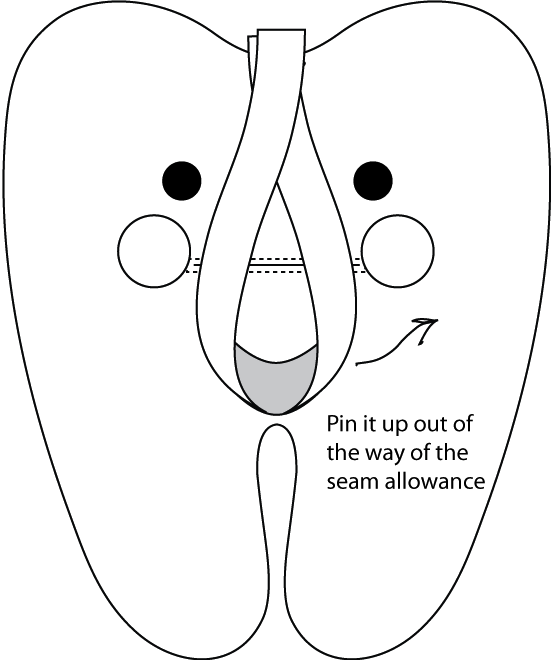 7) добавить ленту. Цикл его пополам и приклейте ее к краю передней части. Pin цикл из способов стежков.