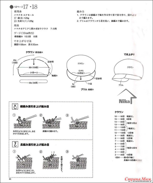 Девочки, какая милая кепочка!!! Нашла в интернете, делюсь схемами, которые доступны и понятны, как и все азиатские модели [показать]