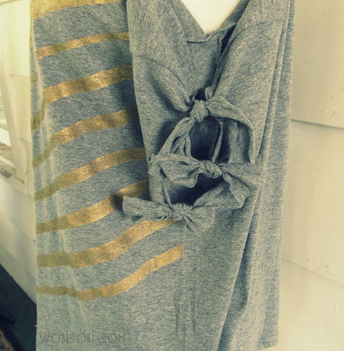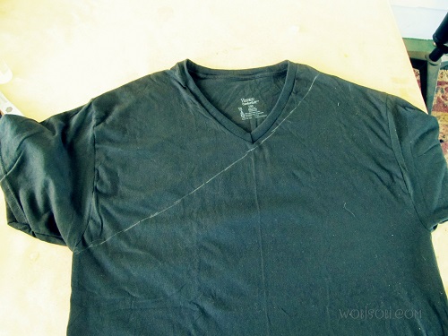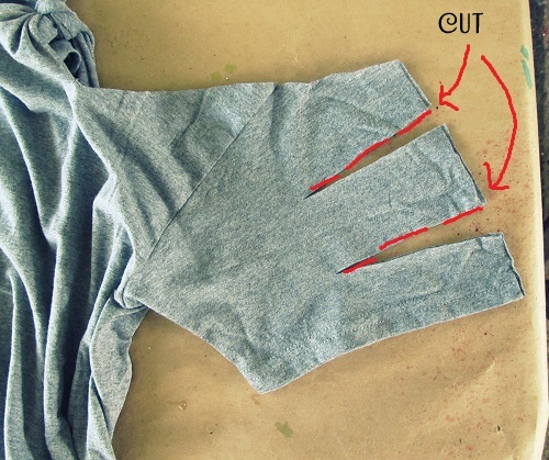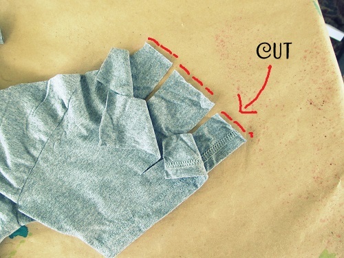Разрежьте рубашку на плече вниз примерно на 12 дюймов.