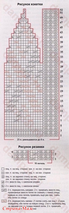 Начало вязания рисунка кокетки: